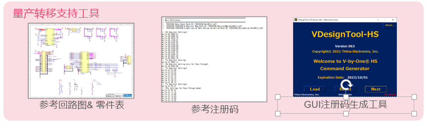 本公司還將向客戶提供本套工具包含的送信/收信板的回路圖、BOM(零件清單)以及「THCV241A」、「THCV242A」の注冊(cè)碼。這樣一來(lái),出圖狀態(tài)下的硬件/軟件環(huán)境會(huì)將這些數(shù)據(jù)統(tǒng)一認(rèn)識(shí)為「能出圖的正確參數(shù)」,作為量產(chǎn)設(shè)計(jì)時(shí)的參考設(shè)計(jì)也能起到作用。客戶將這一「正確參數(shù)」與任意設(shè)計(jì)對(duì)照,也能易于進(jìn)行驗(yàn)證和排除故障。