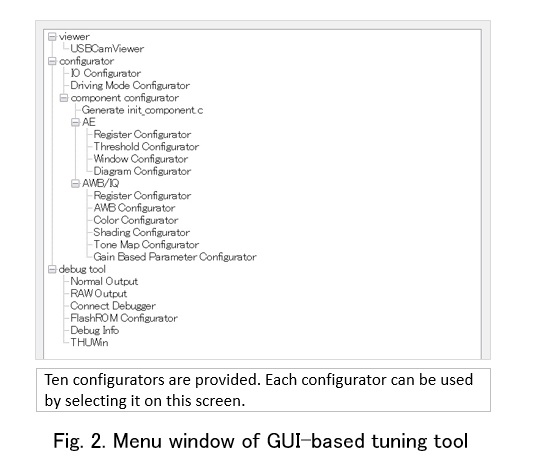 這3件套中,對(duì)客戶好處最多的是GUI工具。在安裝了GUI工具的PC商,只要輸入數(shù)值并在下拉菜單中選擇項(xiàng)目就可以自動(dòng)生成固件。在大幅削減固件開發(fā)費(fèi)用的同時(shí),還能縮短開發(fā)周期。此外,只要具有一定相機(jī)(光學(xué)系)和圖像處理相關(guān)知識(shí),就無需再安排安裝固件的專業(yè)工程師。