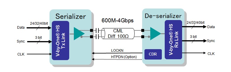 THine Electronics早早地瞄準(zhǔn)了正急速擴(kuò)大的高精度液晶電視市場,量產(chǎn)了作為「液晶電視的標(biāo)準(zhǔn)規(guī)格產(chǎn)品」的高速串聯(lián)接口--V-by-One? HS系列產(chǎn)品。但其基本要素與半導(dǎo)體廠家為各種不同用途生產(chǎn)的SerDes芯片是相同的。