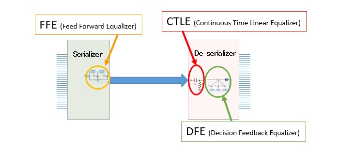 圖3 發(fā)信回路上適用FFE、收信回路上適用CTLE和DFE的信號調(diào)節(jié)技術(shù)